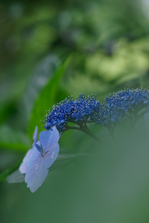 あじさいの葉を逆光で。等倍で見るとパープルフリンジがちょっと目立つ。